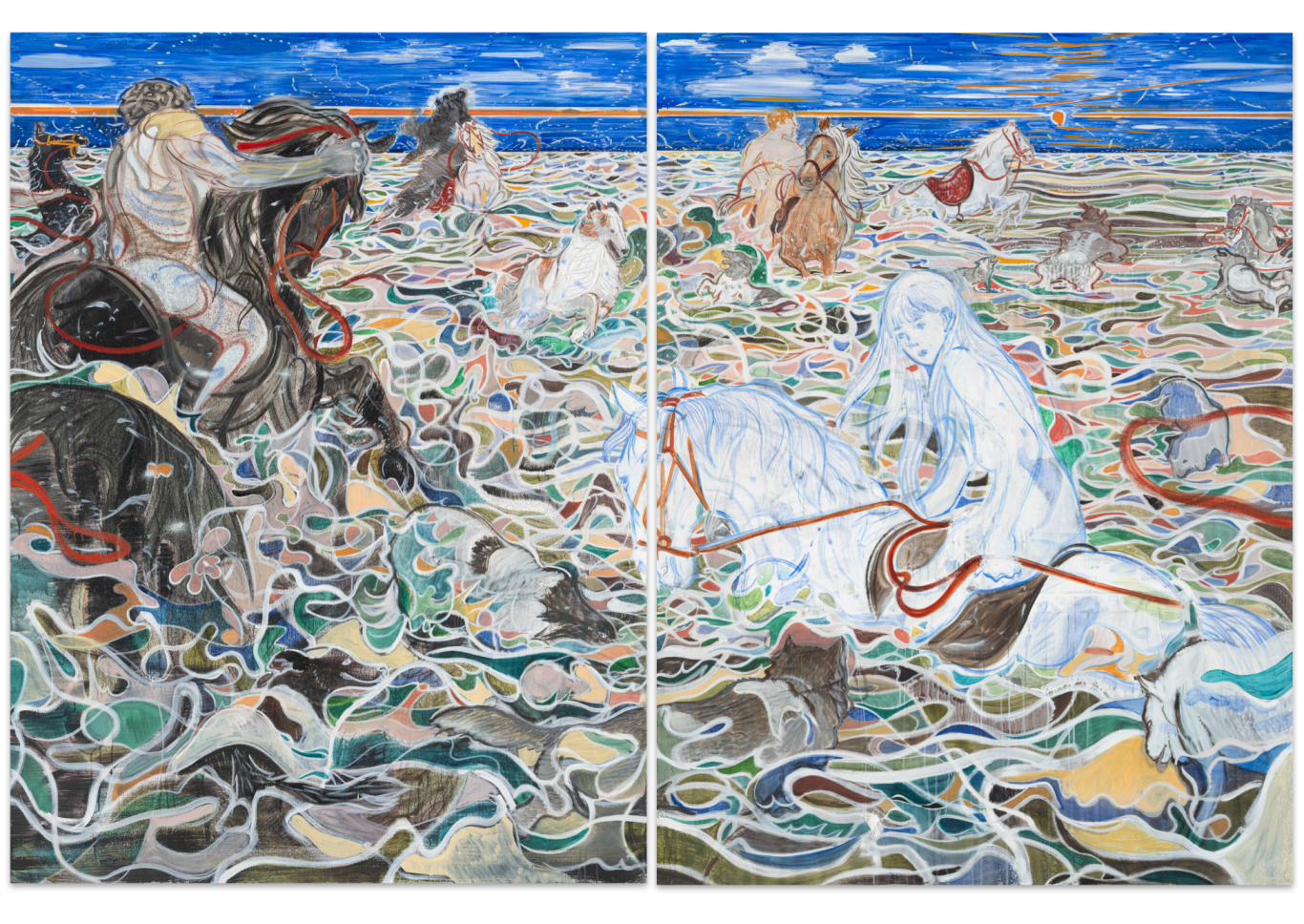 EAST OF SEA, oil and acrylic on linen, 2025, 200 × 300 cm ( 200 × 150 cm ×2 )