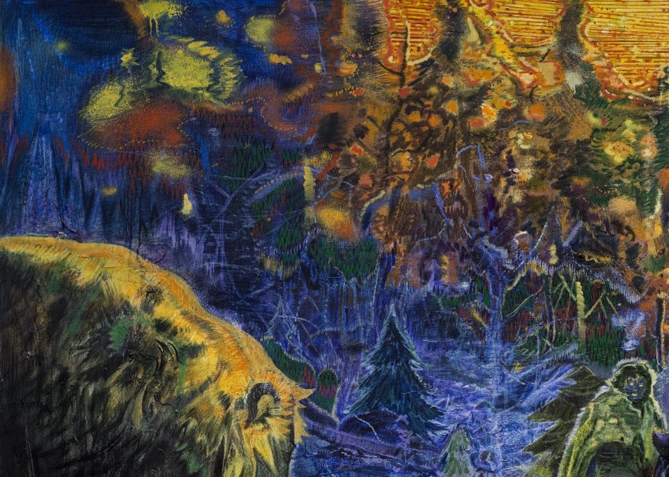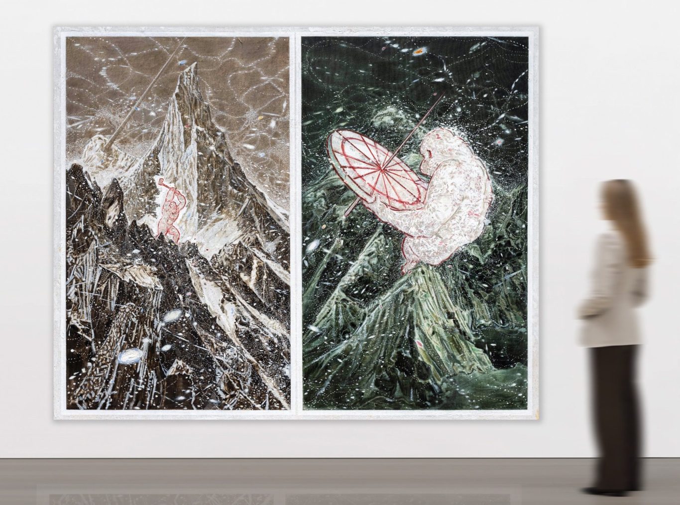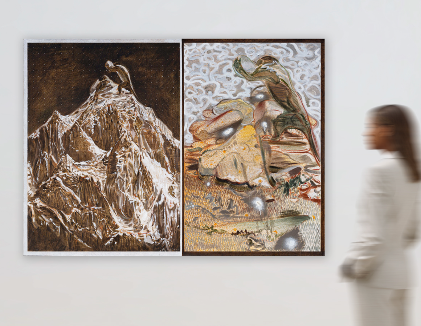 The mountain emerges as a structure generated within the image. It takes shape through the accumulation of multiple temporal layers—myth, history, visual memory, and perceptual fragments—compressed into a single pictorial field.Madness appears here as a condition of instability within the structure. Spatial hierarchies loosen, distance contracts, and scale becomes uncertain. Forms shift continuously between figuration and abstraction, allowing the mountain to remain in a state of formation rather than resolution.Nature operates as an active force within the image. It extends beyond classification, maintaining a presence that is vast, opaque, and continuously shaping the conditions of what can be seen. The human figure exists within this field as a contingent element, subject to the same forces.The image holds a state of flux. Material presence and transformation coexist, producing a surface that is both forming and dissolving. Viewing takes place within this shifting condition, where perception remains active but never fully stabilized.