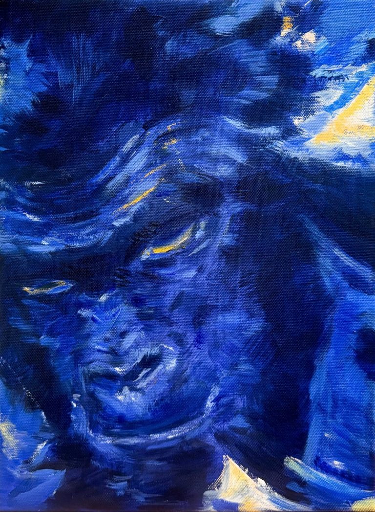 MIRROR BLUE, oil and acrylic on canvas, 2025, 40 × 35cm